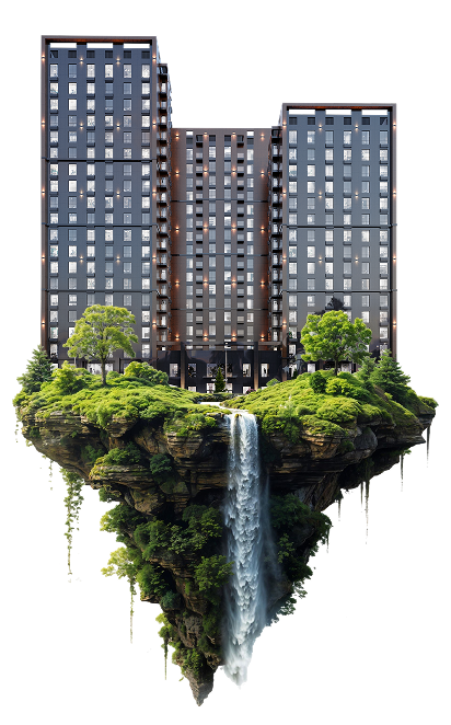 Проект ADORA — это архитектурный фьюжн, где Мы интегрируем зелёные зоны, прогулочные аллеи и панорамные виды, чтобы городской ритм дополнялся тишиной и природной гармонией.